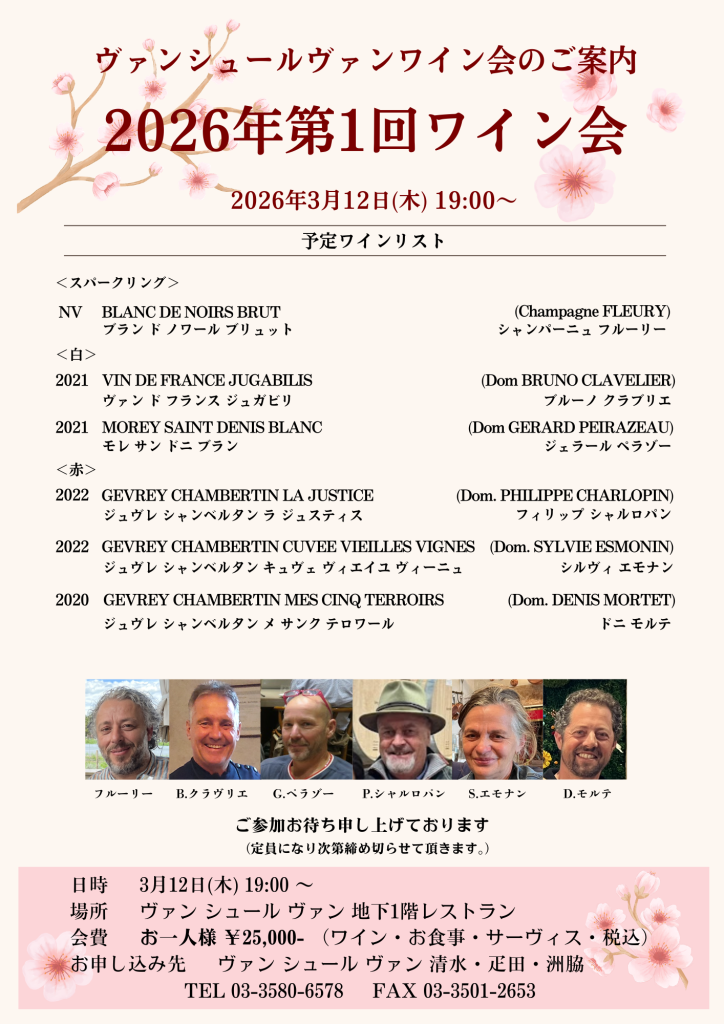 ■会費:お一人様 25,000円(ワイン・食事・サービス料・消費税込)